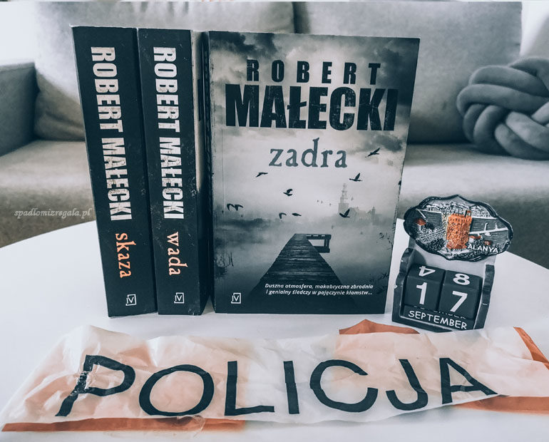 Duszna atmosfera małego miasteczka, w którym wszyscy się znają, strzeżona przez wiele lat tajemnica, układy, znajomości, niedokończone śledztwo i w tym wszystkim on – niezwykle profesjonalny, ale życiowo mocno pogubiony Bernard Gross. Przyznaję, że komisarz to dla mnie najważniejszy punkt całego cyklu. Jego rozterki, skrawki szczęścia i szukanie siebie stanowi dowód na to, że Małecki jest nie tylko pisarzem, ale również spostrzegawczym obserwatorem codzienności. Nie oszczędza żadnego ze swoich bohaterów, dając im możliwość, by zderzyli się z rzeczywistością, potłukli tyłki, a siniaki leczyli bardzo długo. W „Zadrze” jest coś depresyjnego, coś, co mogłoby pogrzebać tę powieść, gdyby nie świetne pióro i bardzo dobrze przemyślana fabuła, która jest już znakiem rozpoznawczym autora.
